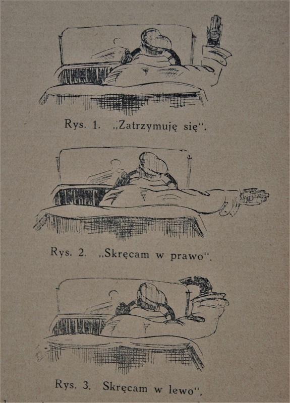 jak mój ojciec zdobywał prawo jazdy mnie nie było na świecie, ale też w niektórych autach nie było kierunkowskazów i świateł hamowania STOP, więc w takich wypadkach obowiązywało sygnalizowanie ręką.