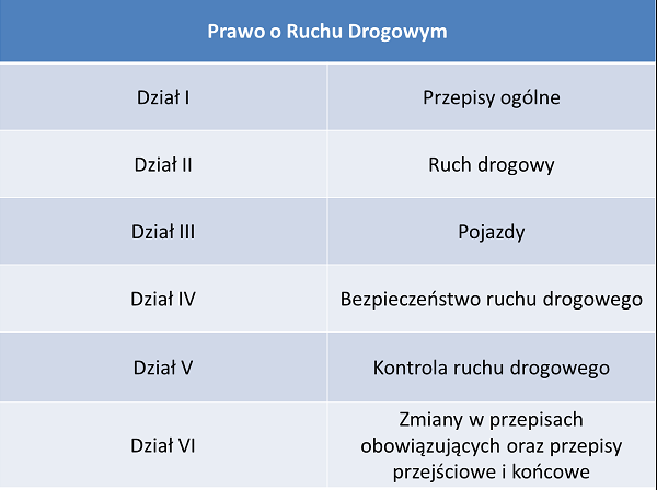 jeżeli weźmiemy Ustawę Prawo o Ruchu Drogowym składa się z działów, a te z rozdziałów, które zawierają oddziały, a te z kolei artykuły.