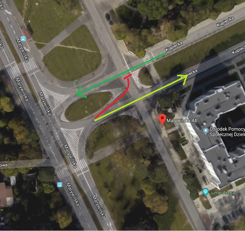 Nie no, wlasnie ja moge skrecic w lewo (zielona strzalka). Kiedys byl tam zakaz skretu w lewo, ale zmienili. Czyli np skrecam w lewo to tamci jadac prosto ustepuja mi, tak? Bo logicznie myslac to ja wtedy jestem na drodze z pierwszenstwem. Tylko np moga rowno dojechac do glownej drogi i wtedy kto pierwszy ten lepszy? :)