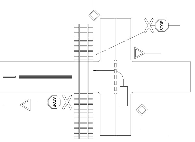 Jechałem drogą z pierwszeństwem i skręcałem w lewo w drogę podporządkowaną z przejazdem kolejowym przed którym jest znak stop i krzyż św Andrzeja. Zatrzymałem się na skrzyżowaniu przed skrętem w lewo, a przed znakiem już nie bo tam nie ma tyle miejsca żeby się w całości zmieścić.
