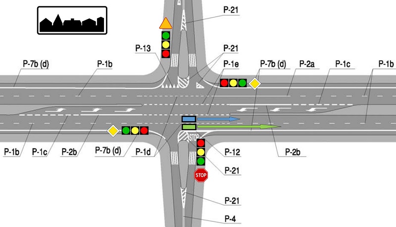 *Jeden z rysunków, to takie samo skrzyżowanie jak w tym wątku (oprócz sygnalizacji i znaków pionowych, które dorysowałem).