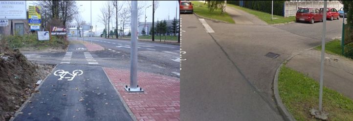 Oddzielenie poziomą - Drogę dla rowerów i pieszych.