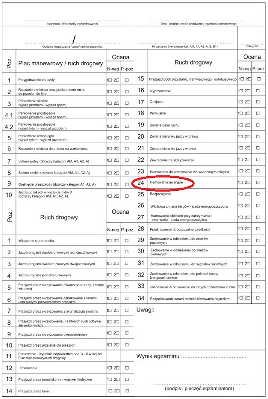 Hamowanie Awaryjne jest wykonywane podczas egzaminu WYŁĄCZNIE w odpowiednich,kontrolowanych warunkach.Ja wykonywałem je na kat.B w nieczynnej zatoce przystankowej.Żaden egzaminator nie będzie zlecał hamowania awaryjnego w normalnych warunkach ruchu drogowego,bo za chwilę ktoś wjedzie mu w tył.