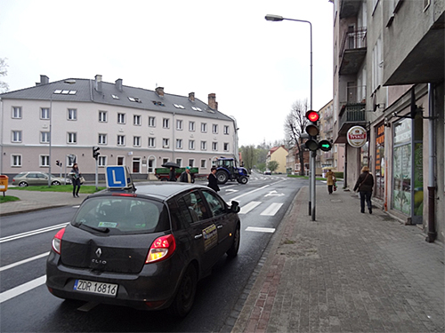 Cyryl napisał(a):proszę popatrzeć na Twoje zdjęcie i powiedzieć, co w tym fragmencie zaznaczonym przeze mnie po lewej, swojego manewru robisz: jedziesz wzdłuż przejścia, w poprzek, włączasz się do ruchu, czy też coś innego?