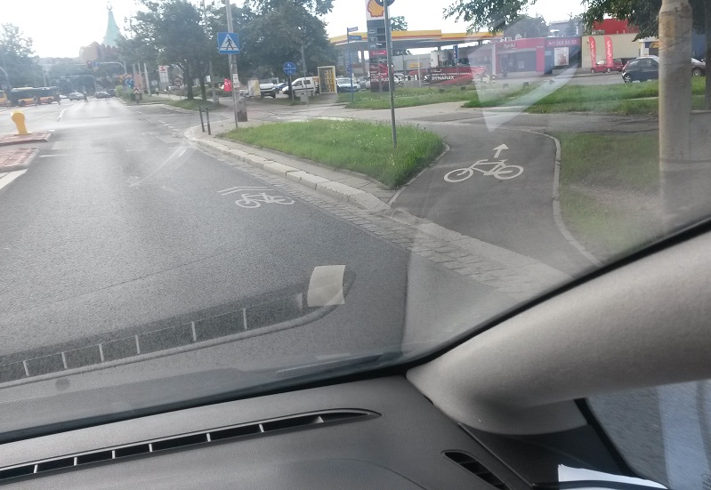 jeżeli pas dla rowerów się nie kończy, to dlaczego za wysepką się zaczyna?