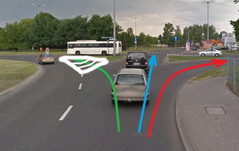 Rozumiem, że skręcając tam w lewo będziesz jechał z lewym kierunkowskazem? No i oczywiscie w lewo tylko z lewego pasa, zgadza się? Czyli mogliby tu zrobic miejsce wyłączone z ruchu no bo i tak nie można tam wjeżdżac.