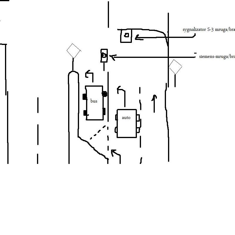 2.To trudne pytanie raczej do tych którzy mieli do czynienia z sygnalizacją świetlną dla autobusów ("siemens").Kto ma w tej sytuacji pierwszeństwo?