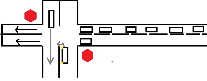istnieje ryzyko że któryś pojazd z kolumny się zatrzyma (np przed pasami) i kierujący z naprzeciwka zdąży przeciąć skrzyżowanie, a ja mogę wymusić mu pierwszeństwo, dojdzie do kolizji