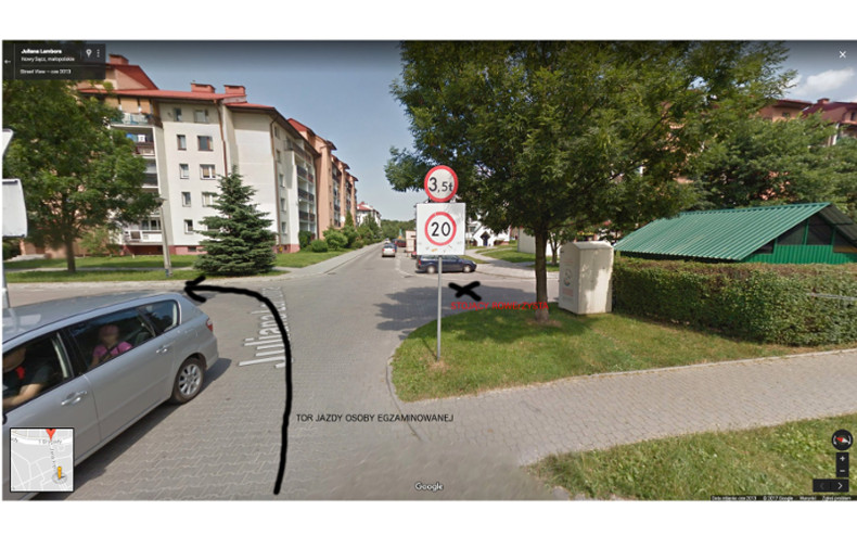 załączam obrazek z opisem sytuacji, miałem możliwość obejrzenia nagrania z przejazdu osoby egzaminowanej