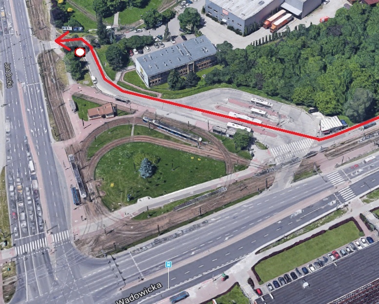 Czy rowerzysta chcący dojechać do Dworca Gdańskiego (obładowany sakwami i z ciężkim plecakiem - skakanie po schodach i pchanie się do zatłoczonych wind i przejść podziemnych raczej odpada, rowerzysta niekoniecznie zna też miasto i układ przejść - zresztą, miejsce jest tylko przykładowe, bo chodzi o zasadę) może pojechać w sposób wskazany niebieską linią?