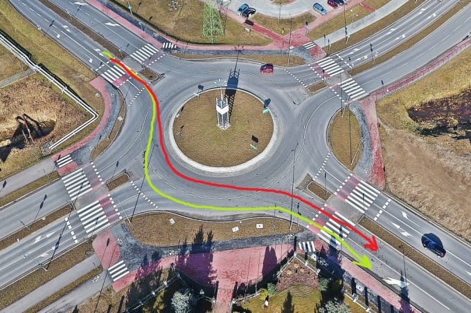 Czy oba przedstawione na zdjęciu sposoby przejechania na wprost przez to rondo są prawidłowe? Jeżeli jadę wg zielonej trasy, to czy przy zmianie pasa ruchu na zewnętrzny prawy to mam pierwszeństwo przed wjeżdżającymi na to rondo? Bo często wpychają się przede mnie i nie wiem czy ja źle jadę czy oni (oczywiście odpowiednio wcześnie sygnalizuję zmianę pasa ruchu kierunkowskazem) :?