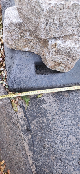 Znak postawiony jest na ulicy a wysokość górnej tablicy informacyjnej na wysokości mojego lustra. Podstawa znaku ma szerokość 45cm, czyli środek tablicy jest na 22cm plus 52cm tablicy od środka. Czyli znak wystaje na ulicę prawie 75cm.