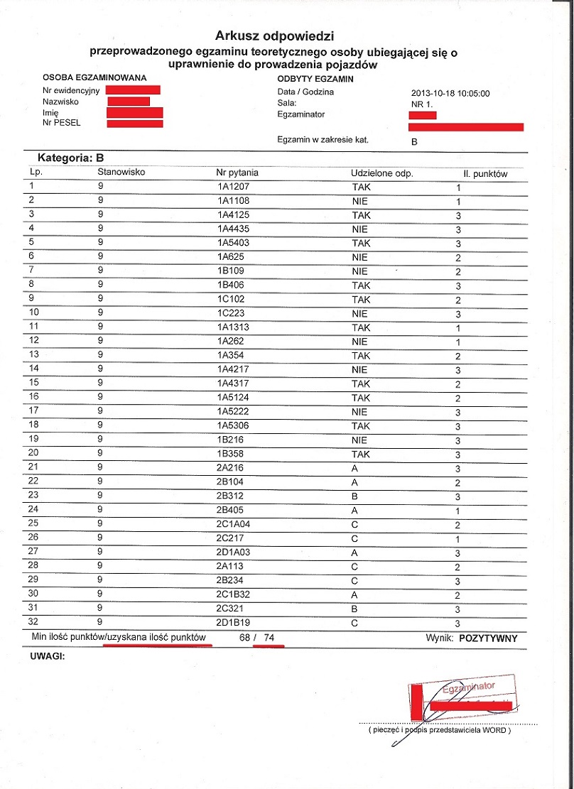 Re: Arkusz odpowiedzi- egzamin teoretyczny