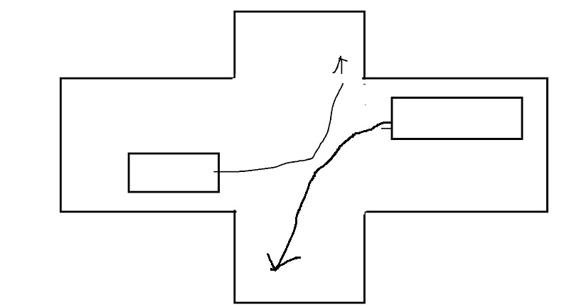 Kolizje masz jak jeden skręca w lewo,a ten z przeciwka leci prosto lub skręca w prawo - czyli jak obaj chcą wjechać w tą samą ulicę - np gdyby u mnie ten "pojazd" po prawej chciał pojechać w tą ulicę,w którą ten "pojazd" po lewo :) Wtedy była by taka sytuacja jak u zakładającego wątek, tyle że "na północy" ,