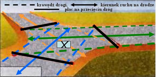 sankila napisał(a):Natomiast nie na każdym skrzyżowaniu wszystkie drogi się rozłączają, bo np na skrzyżowaniu T jedna z dróg wchodzi na skrzyżowanie ale z niego nie wychodzi, bo się na skrzyżowaniu kończy (pojazd z tej drogi musi zmienić kierunek jazdy).