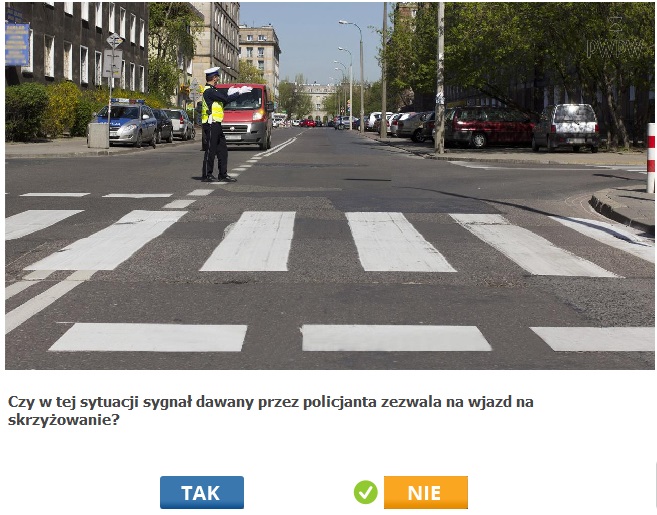 2)Policjant stoi bokiem. Dlaczego nie mozna wjechac na skrzyzowanie?