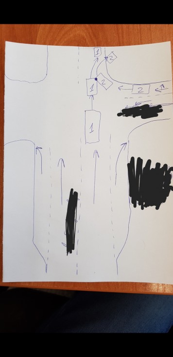Witam! Jakiś czas temu miałem kolizję i sytuacja wyglądała tak, że mając 2 pasy do jazdy na wprost jechałem prawym pasem i z podporządkowanej wyjechał inny kierowca i doprowadził do kolizji (dołączam schemat z mojej strony). Wiadomo, że jego wina, ale teraz sprawa poszła do sądu i on próbuje udowodnić, że ja jechałem lewym pasem i zmieniłem po tym jak on wyjechał(uderzenie w lewy błotnik) . Pytanie następujące: nawet jakbym jechał lewym pasem, to moim zdaniem jest jego wina, bo musiał upewnić się, że nikomu nie przeszkadza. Czy mógłby ktoś podać nr artykułu, żeby odwołać się.