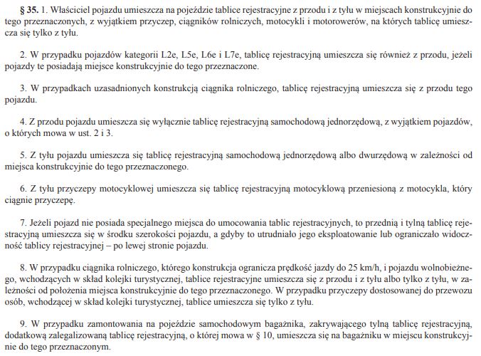 szymonix napisał(a):W "warunkach technicznych" polożenia i wymiarów miejsca na TR nie określa się. Czy to oznacza, że z przodu może być kwadratowa tablica??