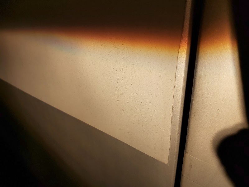 reflektory soczewkowe stosowane w autobusach mają to samo, na granicy światła i cienia jest pasek "tęczy".