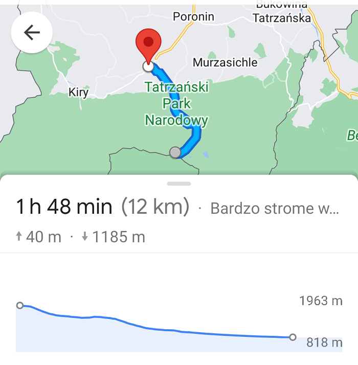 Przykład: wspinam się na Kasprowy, jaki dystans pokaże appka w telefonie?