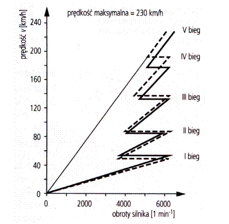 Chcemy zwiększyć prędkość na 120km to musi podwoic obroty. Ale w pierwszym przypadku jest, to 3tys więcej obrotów a w drugim tylko 1,5tys obrotów. Kiedy mamy bieg wyższy to mamy wolniejsze wykręcanie w obroty ale za to mniej muszą obroty wzrosnąć bo tylko 1,5tys a kiedy jest bieg niższy, to aż 3tys, tylko wtedy się szybciej wkręca w obroty ale musi tych obrotów drugie tyle zwiększyć.