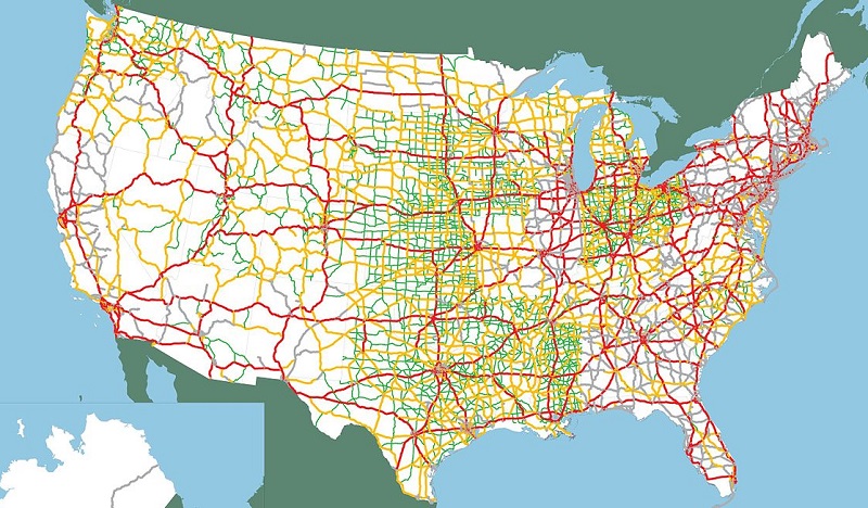 National Truck Network tutaj zaznaczone na czerwono i żółto