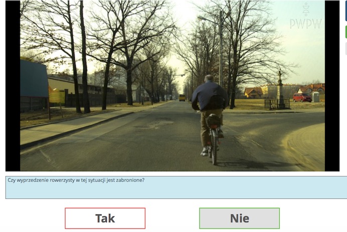 11.Powierzchnia wyłączona i pytanie czy właściwie się zachowałeś powstrzymując się od wyprzedzania rowerzysty-TAK