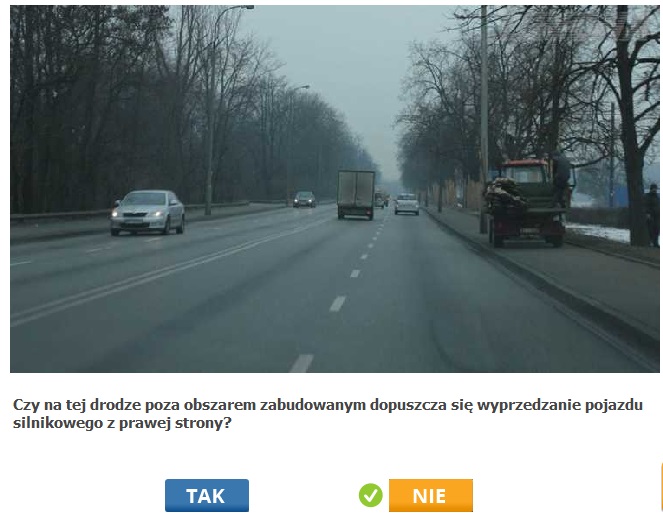 Pamietam jeszcze pytanie,ale nie zrobilam zrzutu,w ktorym jest sie pare metrow przed znakiem "droga z pierwszenstwem". Pytanie brzmi "Czy w tej sytuacji zblizszasz sie do drogi z pierwszenstwem?" i odpowiedz brzmi "nie"