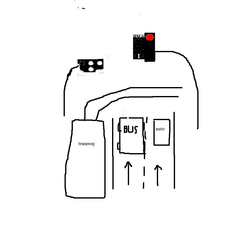 3.Jak wiadomo "na skrzyżowaniach o ruchu kierowanym pojazd szynowy skręcający na tym skrzyżowaniu przepuszcza pojazdy jadące na wprost".Miałem taką sytuację na ul.Piotra Skargi we Wrocławiu.Stoję autobusem na pasie do jazdy na wprost.Mam czerowne śwaitło na sygnalizatorze S-1 ale jednocześnie siemens w pozycji "I" który zezwala mi na wjazd na skrzyżowanie.Obok mnie po lewej stronie po torowisku jedzie tramwaj który skręca mi przed nosem w prawo.Siemens dla tramwajów pozwala mu na skręt w prawo.Kto ma tutaj pierwszeństwo? Czy to jest jakiś wyjątek i mimo tego że siemens dla autobusów pozwala na wjazd na skrzyżowanie mam się zastosować do sygnalizatora S-1 dla samochodów? Nie byłem pewien czy mam pierwszeństwo więc delikatnie ruszyłem do przodu-tramwaj zaczął dzwonić i ustąpiłem mu pierwszeństwa.Czy prawidłowo? Jeżeli czegoś nie rozumiecie mogę również dołączyć rysunek poglądowy
