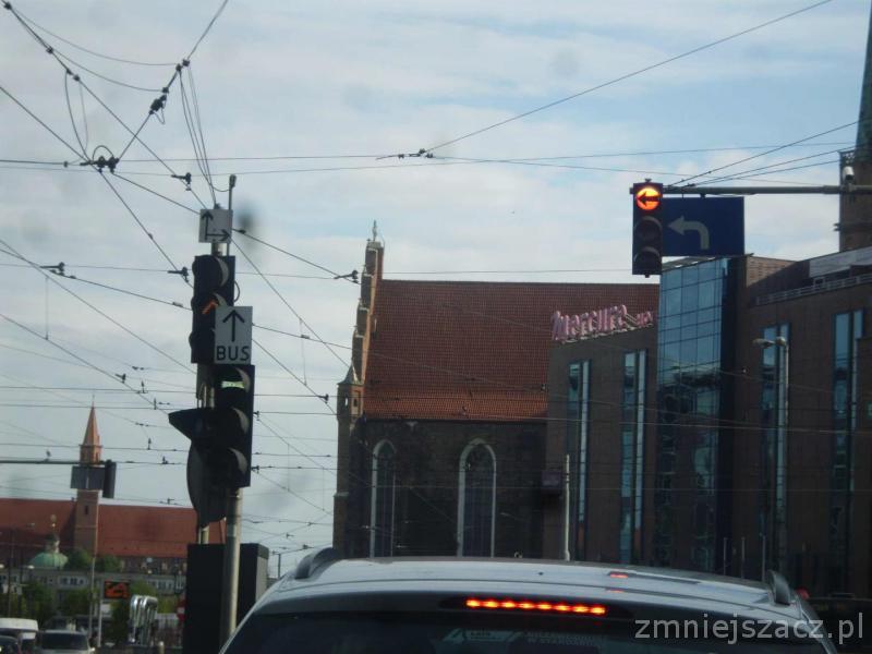 w tym wypadku lepiej kierować się sygnalizatorem dla tramwajów (simensem). o ile kierowcy z MPK z większym stażem wiedzą o tym, młodsi oraz kierowcy Sevibusów, czy DLA kierują się często sygnalizatorem nad lewym pasem.