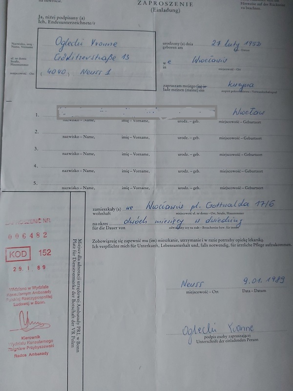 zaproszenie ostanie - niezrealizowane, bo z 1989 roku, czyli stracone 100 DEM.