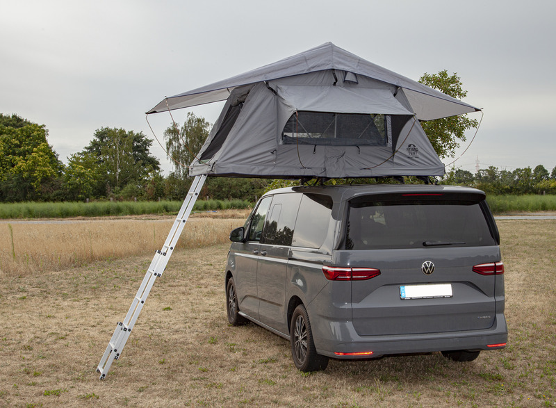 Kolega jechał z dwoma córkami przez Niemcy. Ma busa z rozkładanym na bok namiotem dachowym.