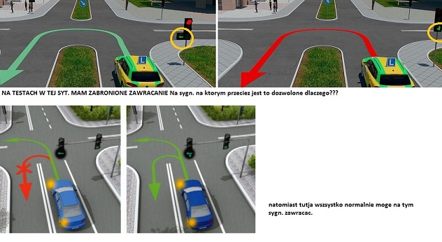 Rozwiazuje testy z 2 stron, i na jednej zawsze przy takim sygnalizatorze mam prawo zawrocic, a na innej stronie z testami nie zawsze mam prawo zawracac na tej strzalce, nie kumam.