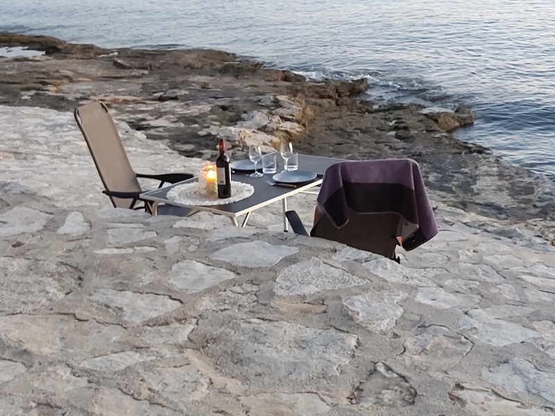 tak można podróżując kamperem jadać kolację (październik 2021 Chorwacja). nam tyle kontaktu z przyrodą wystarczy