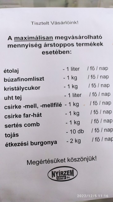 na foto ilość towaru który może kupić 1 osobę na dzień.