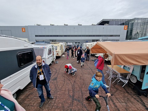 spora rzesza kamperowców i karawaningowców przyjeżdża na targi swoim sprzętem i urządza sobie tam imprezę.
