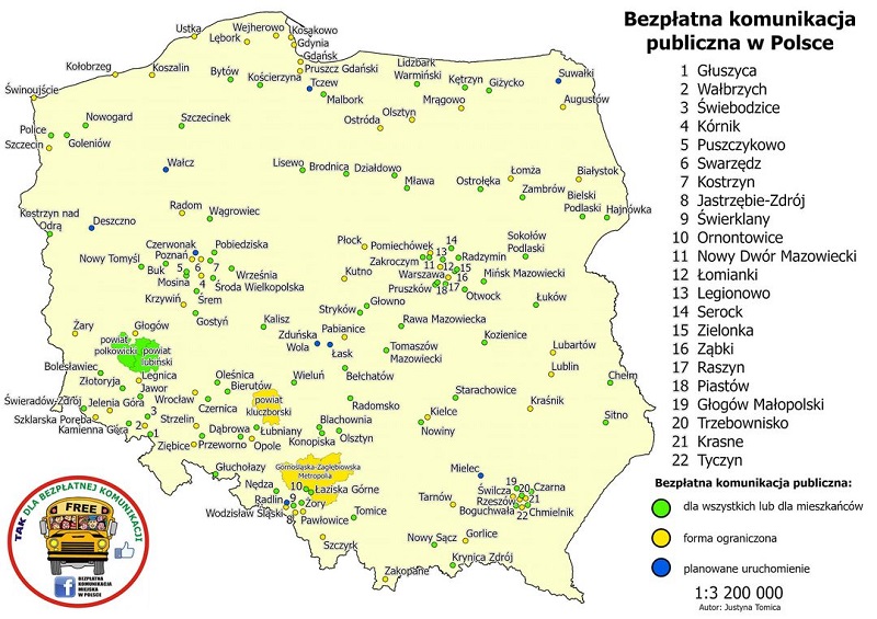 w Polsce już wiele miejscowości ma bezpłatną komunikację, niektóre wprowadzają warunkowo - tylko dla swoich mieszkańców inne - dla wszystkich.
